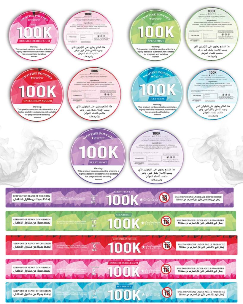 100K is a modern nicotine pouch brand inspired by Swedish standards, developed using technology in Gandhidham, Gujarat, and exported to multiple countries. Designed for a cleaner, smoke-free experience, 100K focuses on innovation, quality, and style for today’s consumers.