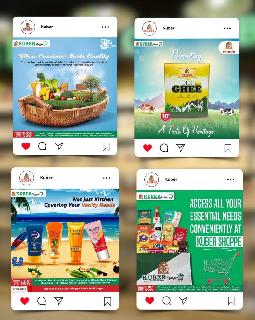 Kuber Shoppe is a rapidly growing brand under Kuber Khanpan Udyog and one of Delhi-NCR’s leading grocery store chains, offering a comprehensive range of food and household essentials. With a legacy rooted in trust and tradition, Kuber Shoppe wanted to evolve its presence and connect with a modern, design-conscious audience while staying true to its cultural values.